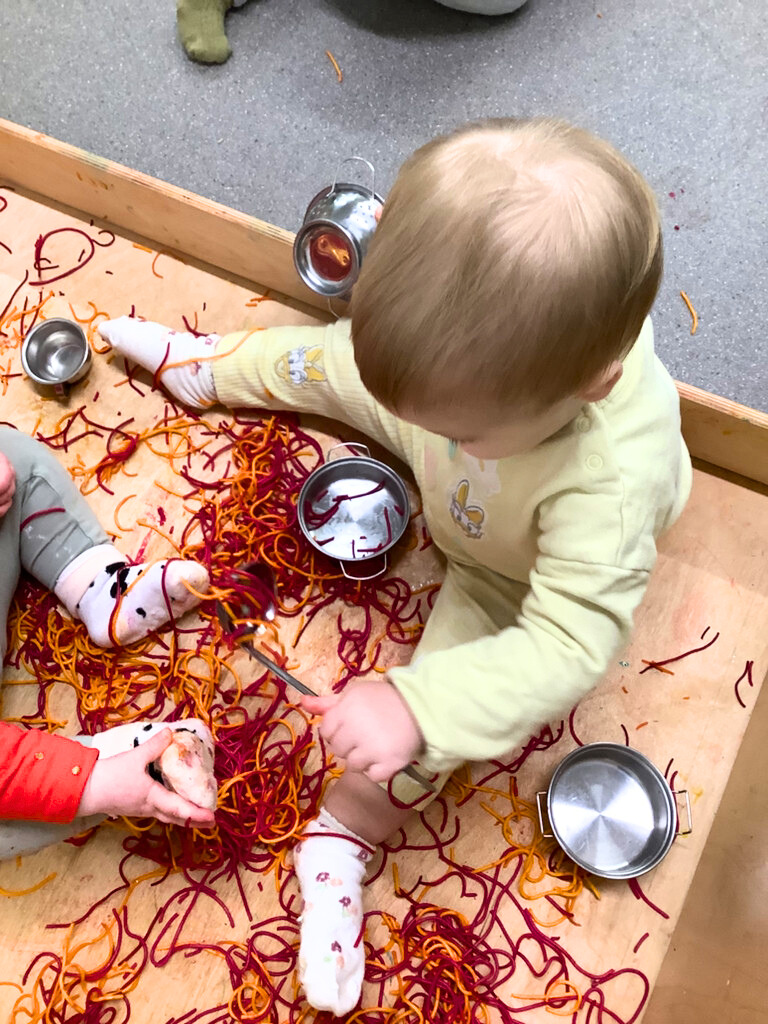 The Little Acorns room offers a natural and enriching environment. The space is thoughtfully arranged with soft colours, natural materials, and child-sized furniture to promote a sense of security and independence. We encourage sensory exploration through hands-on play with natural objects, such as fresh herbs and vegetables, to spark children's imagination.