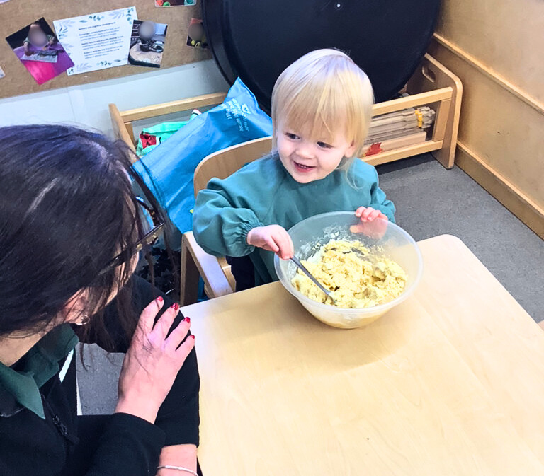The Tiny Acorns baby room is thoughtfully designed to promote a calm, natural, and stimulating environment for babies and toddlers. Several aspects of the room's design contribute to the children's development and well-being. We've created a nurturing, natural environment where your baby can feel safe, calm, and inspired. With child-sized furniture and easily accessible toys, we encourage independence and a love for the world around them through play with natural materials like herbs and vegetables in our beautiful outdoor space specially designed for babies and toddlers.