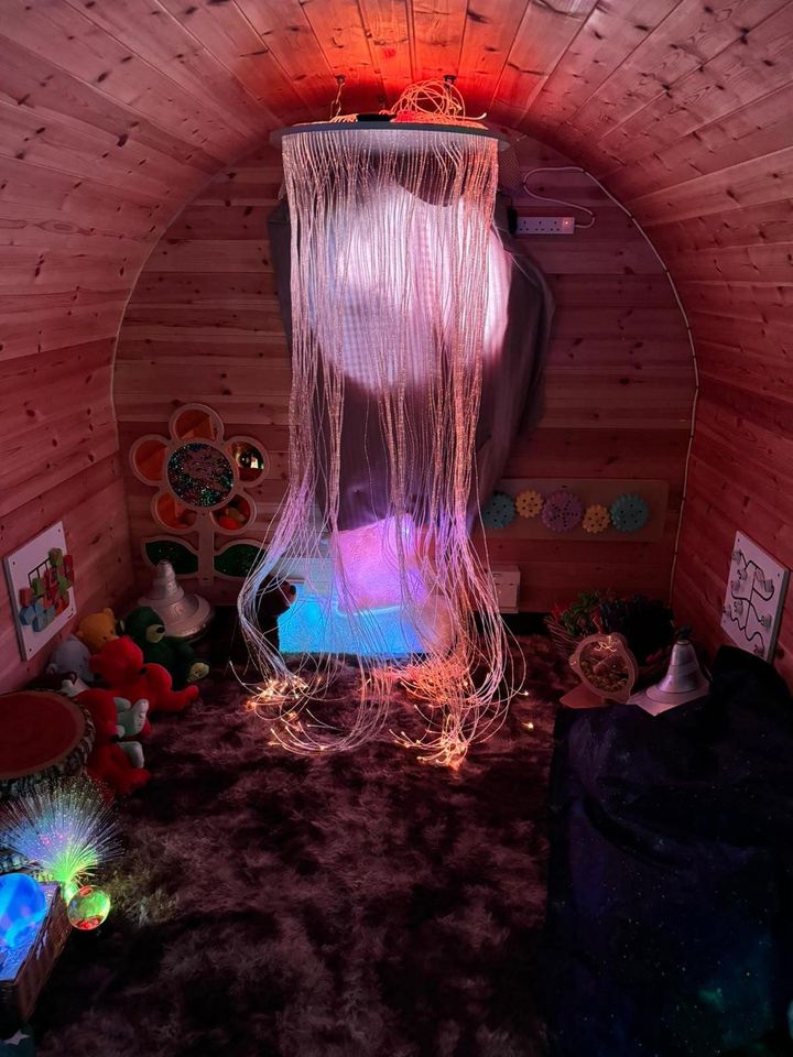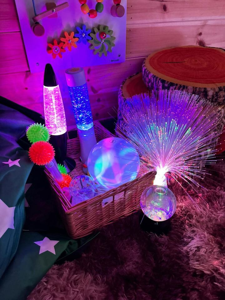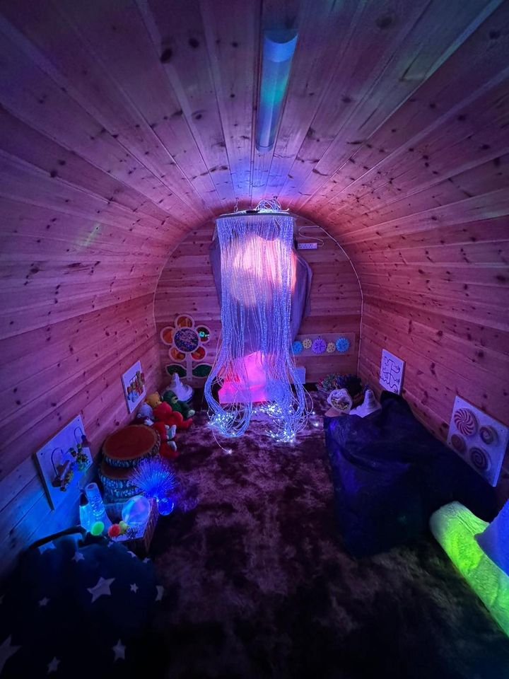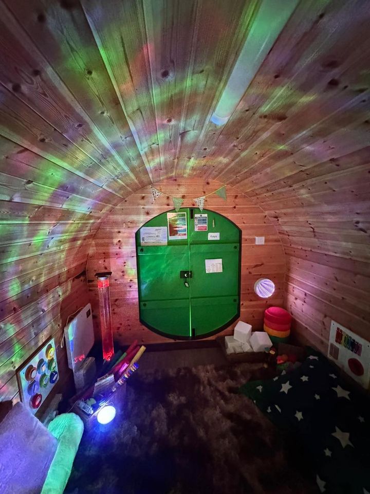 Tucked away in our garden is our enchanting, Hobbit-like sensory pod — a cosy little hideaway where children can explore, play, and discover their senses in a calm and magical environment. Step inside, and you’ll find a treasure trove of sensory delights: gentle lights, soothing sounds, soft textures, mood bears, and a variety of fidget toys, all carefully chosen to help children regulate their emotions and engage their senses.